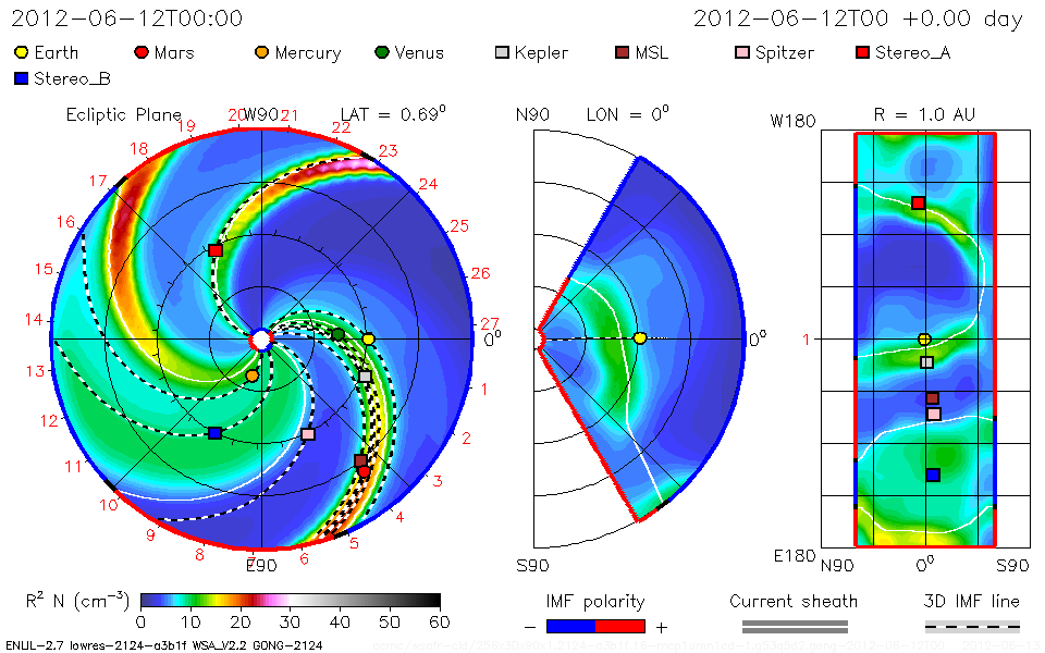 Die sich schnell bewegende (1360 km/s = 4,89 Mio. km/h) Wolke trifft unser planetarisches Magnetfeld am 16. Juni ca. 16:00 Uhr MESZ und stört möglicherweise die Funkenbildungen und löste einen geomagnetischen Sturm aus. In hohen Breiten werden Polarlichter erwartet. Von diesem CME sind aber keine größeren Probleme zu erwarten. das kann ja noch kommen.